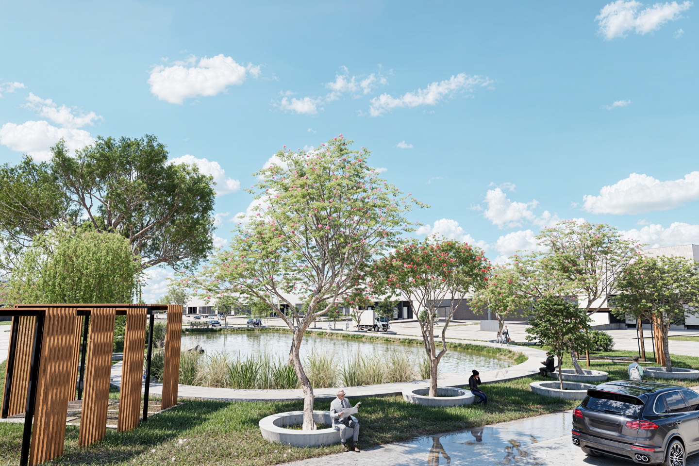 - Áreas verdes con laguna artificial